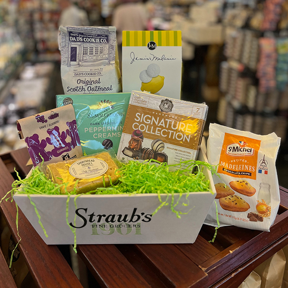 Treat someone special (or yourself!) to our wonderful Sweets Basket! It's packed with delicious goodies like Dad's Oatmeal Cookies, the Chocolate Chocolate Chocolate Signature 7 piece collection, classic Shortbread Fingers, Gummy Bears, Peppermint Creams, St. Michel Chocolate Chip Madeleines, and Janis & Melanie Tea Cookies.
